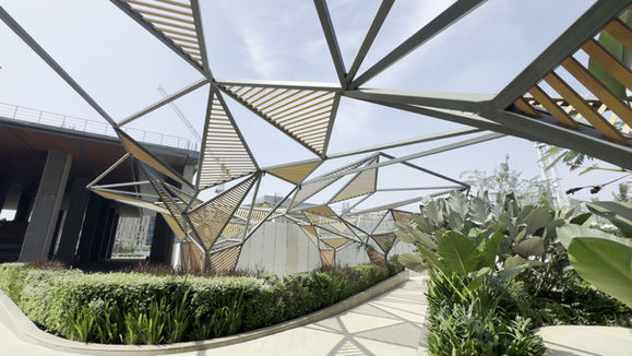 The Trivillion explores the triangle as the fundamental unit of structure and space. Inspired by the idea of a pavilion, triangulated planes expand into a walkable canopy that filters light and frames the sky. It transforms a garden pathway into an immersive geometric experience of stability, movement, and shadow.